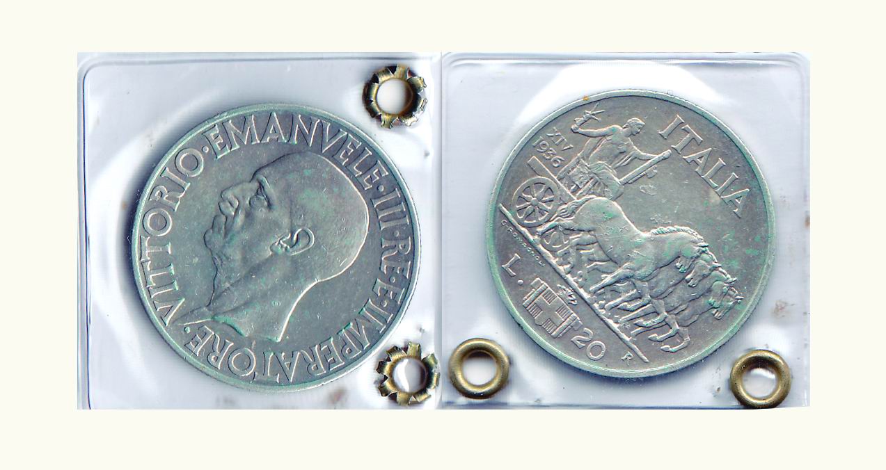 VITTORIO EMANUELE III - 20 Lire 1936 - Impero. Metallo: AR - Conservazione: q.SPL