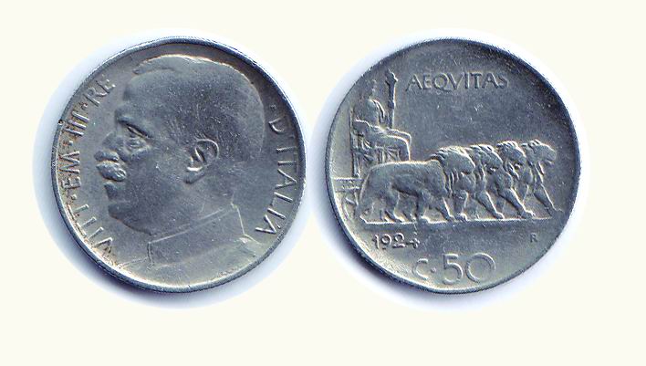 VITTORIO EMANUELE III - 50 Centesimi 1924 - Leoni - Rigato - P.805. Rarità: RR - Metallo: Ni - Conservazione: MB