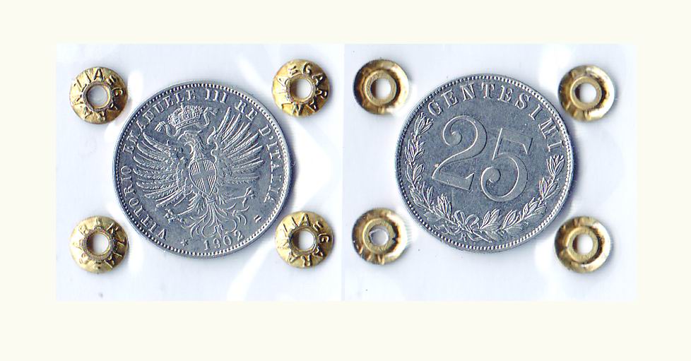 VITTORIO EMANUELE III - 25 centesimi 1902 - Gig.191. Rarità: R - Metallo: Ni...