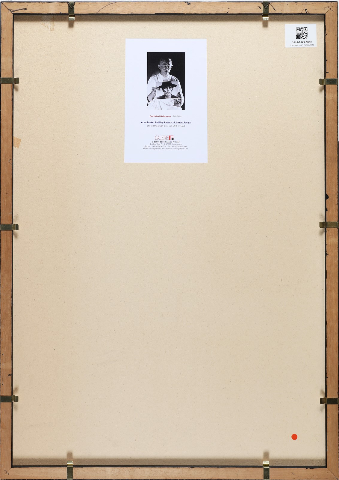 HELNWEIN GOOTFRIED (n. 1948) Arno Breker holdin picture of Joseph Beuys. . Litografia. Cm 56,00 x 79,00. Al retro cartiglio Galerie-F GmbH di Kranenburg. . Cornice presente