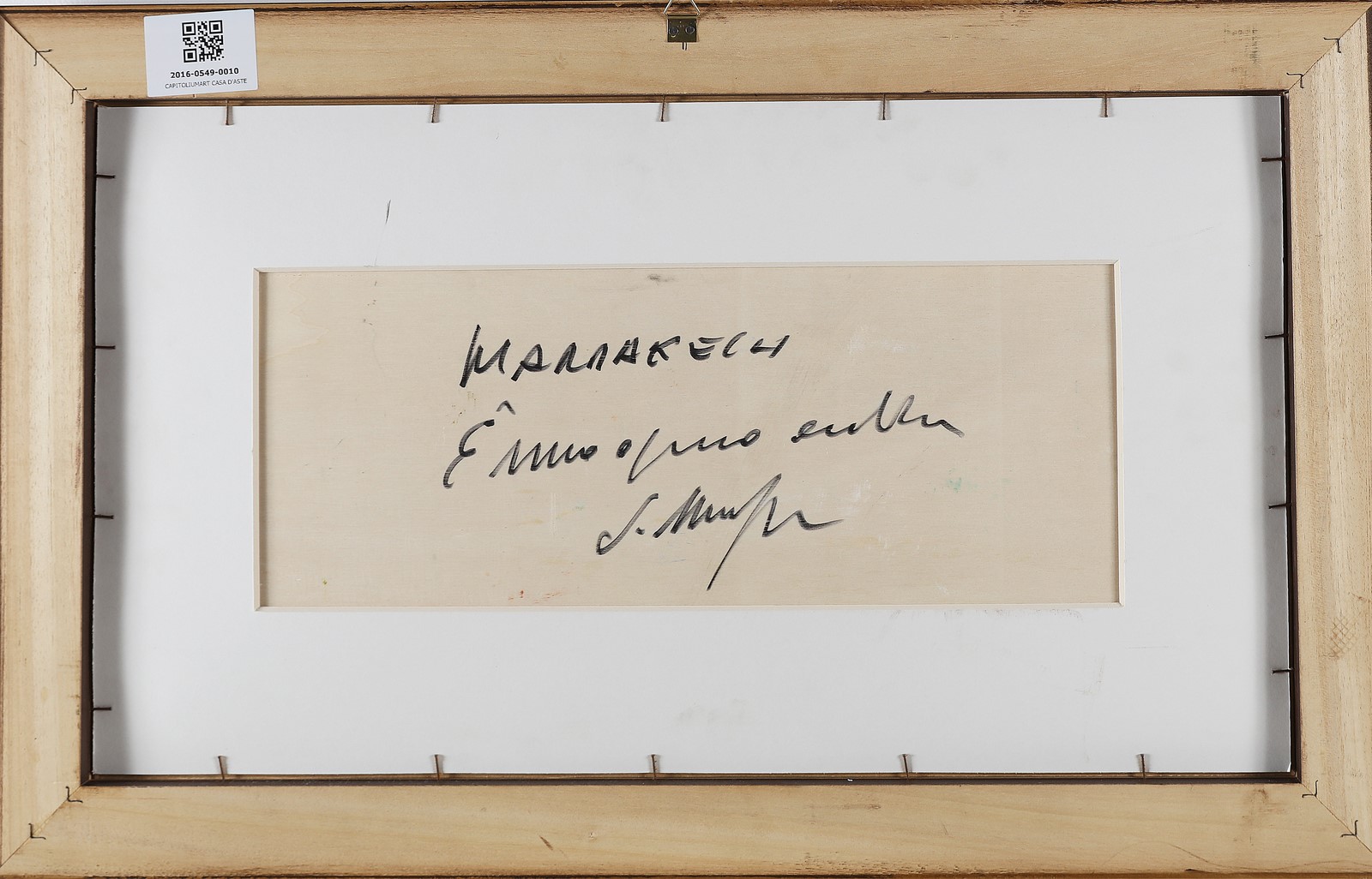 MAGAZZINI SALVATORE (n. 1955) Marrakech. . Olio su tavola. Cm 50,00 x 25,00. Firma in basso a destra. Al retro firma e titolo. . Cornice presente