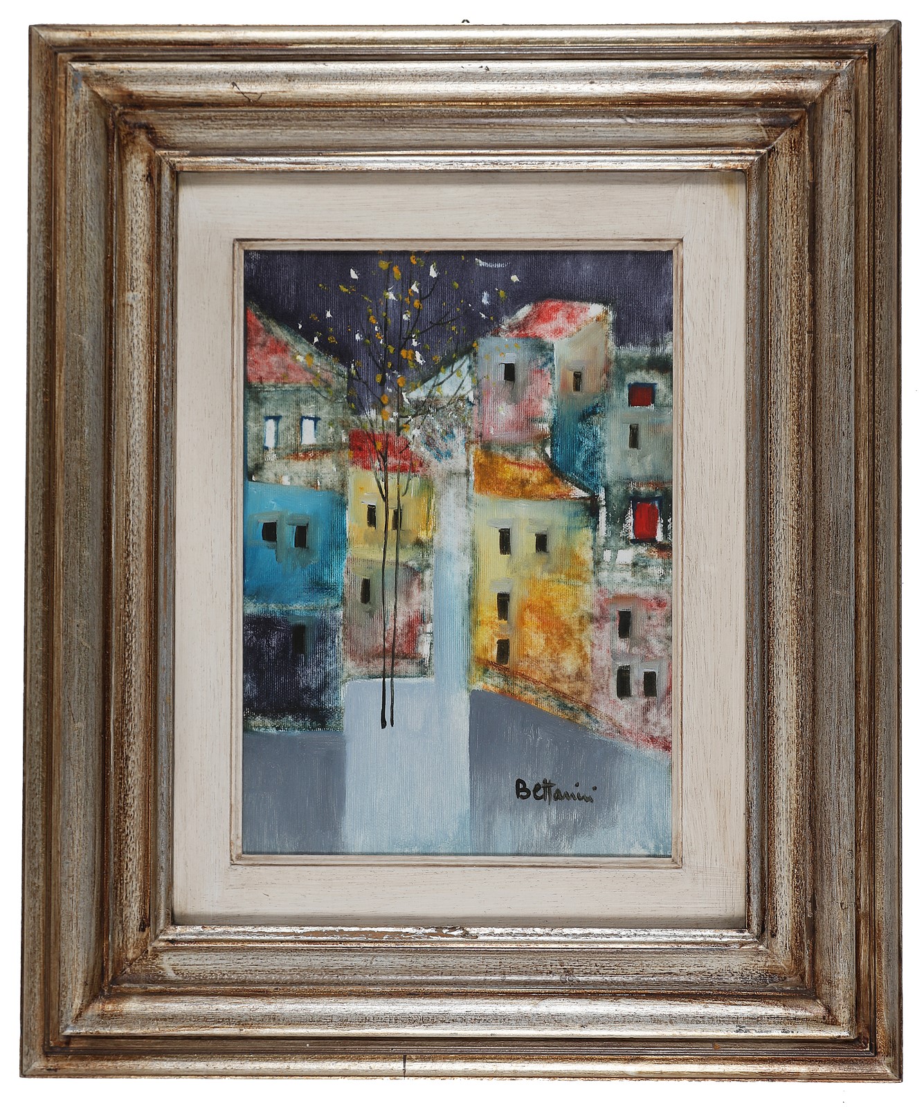 BETTARINI LIDO (n. 1927) Senza titolo. . Olio su tela. Cm 35,00 x 25,00. Firma in basso a destra. Al retro firma. Certificato di autenticità a cura di Renzo Spagnoli Arte, Firenze. Cornice presente