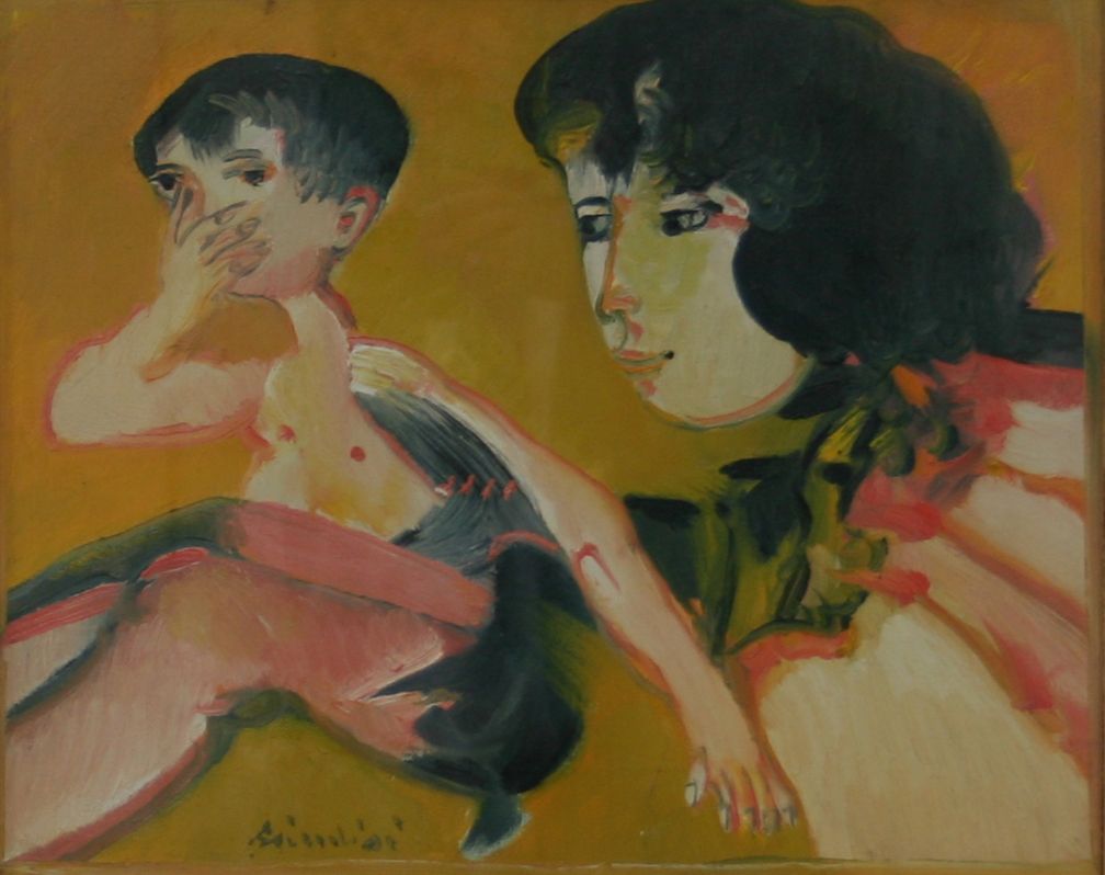 BRINDISI REMO Roma 1918 - 1996 Milano "Maternità" 30x40 olio su tela Opera firmata in basso a sinistra e al retro Autentica dell'artista su fotografia