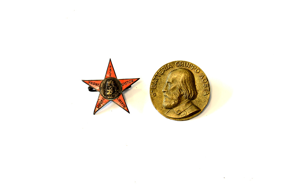Lotto composto da due distintivi metallici raffiguranti Garibaldi. Italia, I met‡ del XX secolo