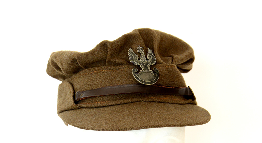 Berretto di colore grigio verde, con fregio. Polonia, II Guerra Mondiale