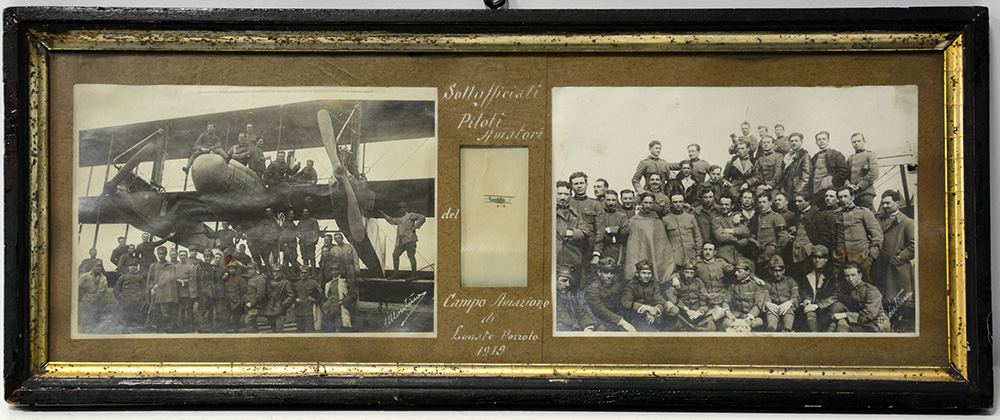 Cornice contenente tre foto dei sotto-ufficiali piloti aviatori del Campo di Lonate Pozzolo, datate 1919