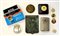 Lotto composto da un acciarino, da varie medaglie di commemorazioni militari, una placca in bronzo e un binocolo tascabile da teatro