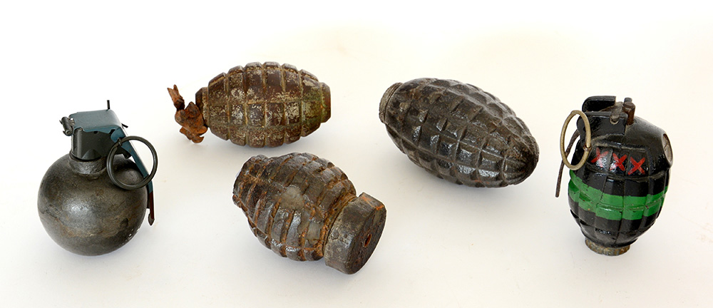 Lot 873 | Lotto di cinque bombe a mano neutralizzate. II Guerra mondiale