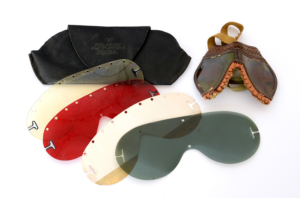 Raro paio di occhiali da pilota con relativi filtri e custodia in pelle. America, II Guerra Mondiale