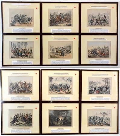 Lotto composto da dodici litografie colorate (cm 18x24) inerenti fatti della guerra franco-prussiana. In cornici