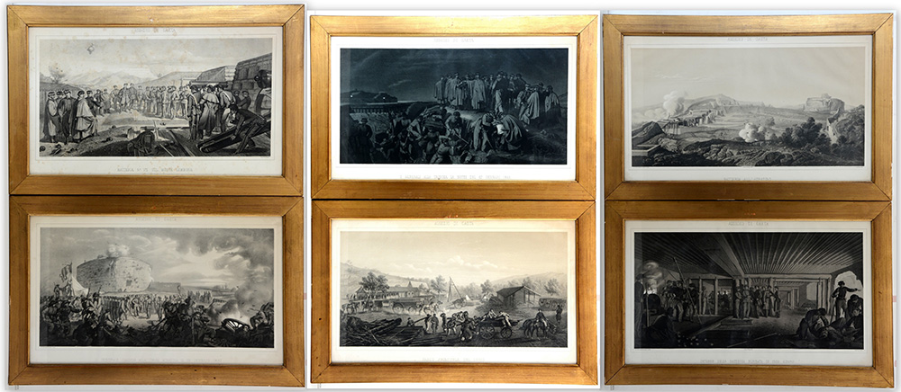 Lotto composto da sei litografie raffiguranti episodi dell'assedio di Gaeta...