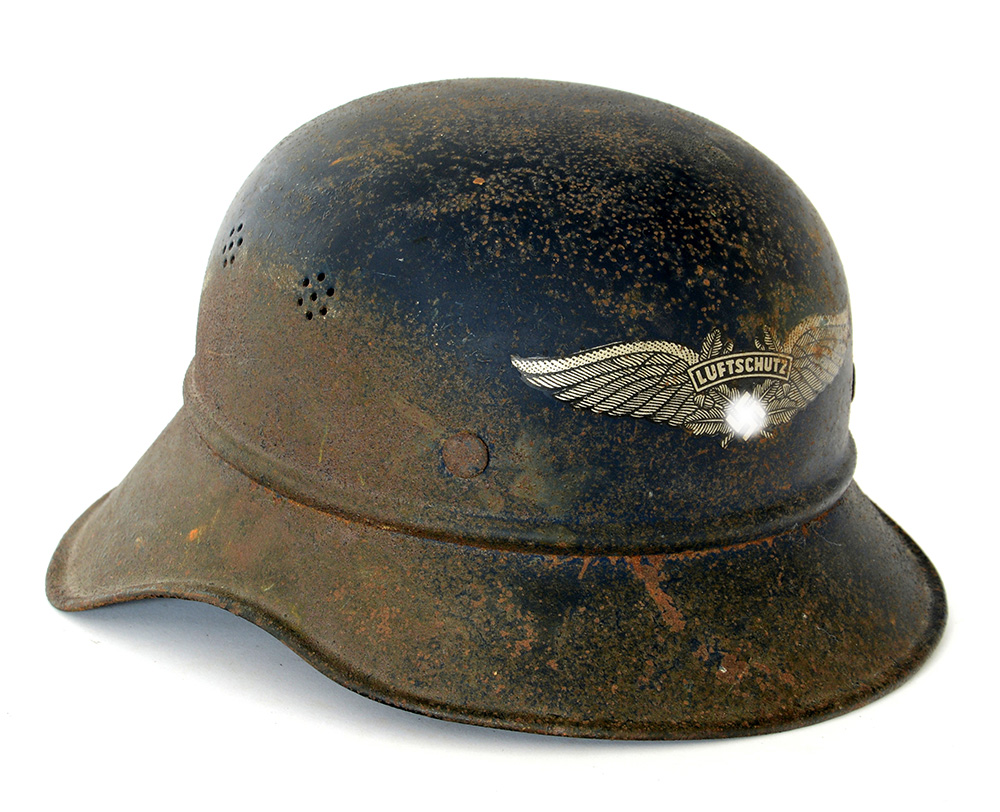 Elmetto tedesco della Luftschutz. II Guerra Mondiale. Colorazione blu...