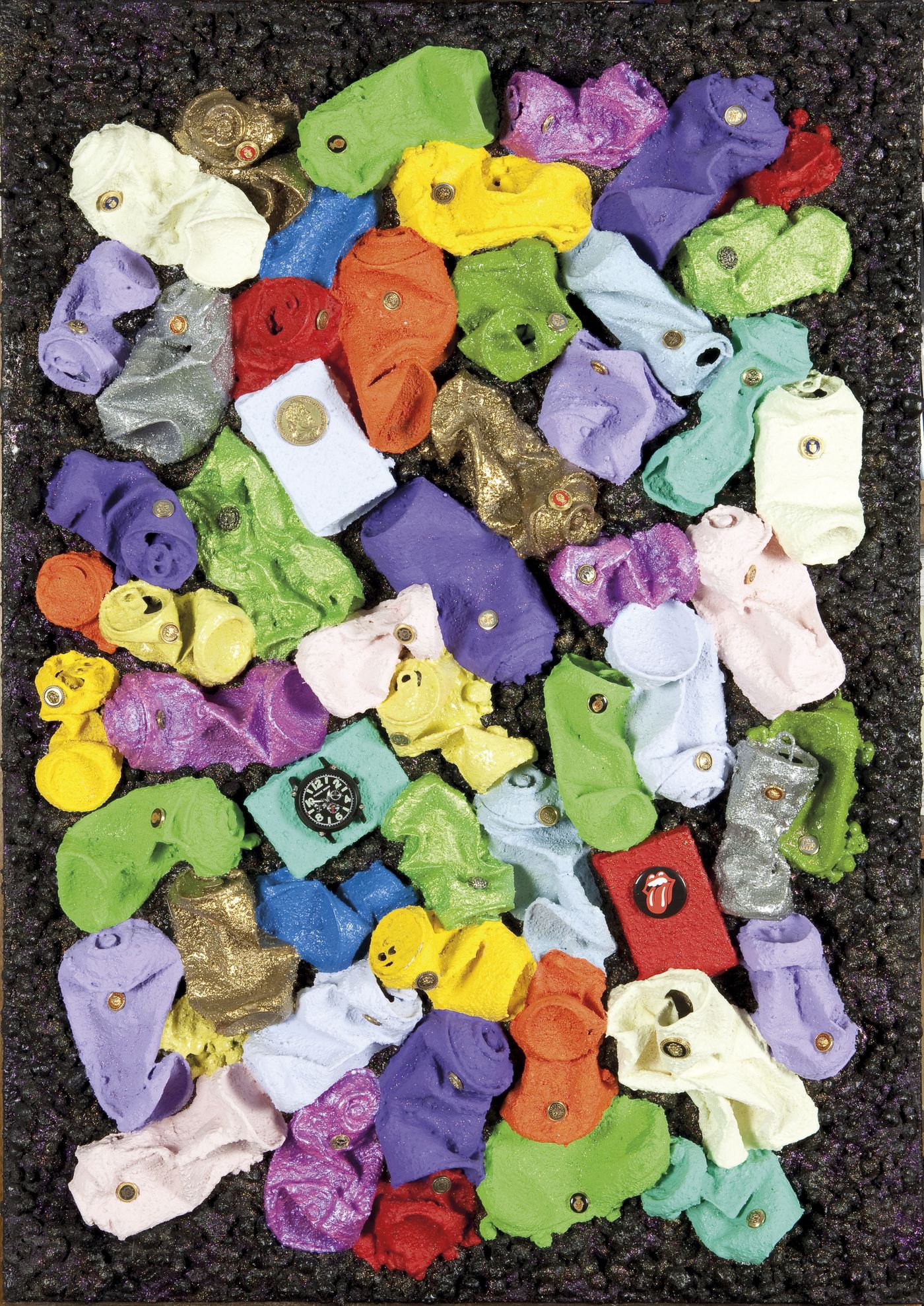 PARINI WALTER Arluno (MI) 1953 "Trash" 10 aprile 2009 100x70 acrilici, argilla espansa, bombolette, lattine, medaglie e monete applicate su tela Opera firmata, datata e intitolata al retro