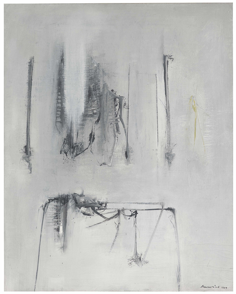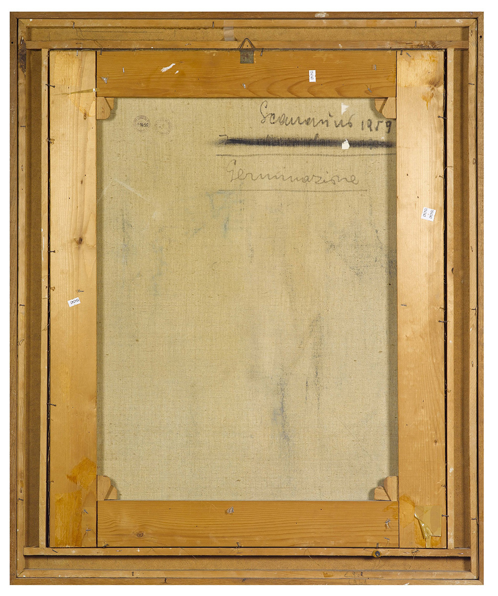 Emilio Scanavino (1922-1986), Germinazione, 1959, olio su tela, cm 92x73 firmato e datato in basso a destra firmato, datato e intitolato al retro Timbro al retro della Galleria del Naviglio, Milano, Provenienza: Galleria del Naviglio, Milano Collezione Malabarba, Milano Esposizioni: Los Angeles, 1959 e riprodotto sul catalogo Bibliografia: E. Scanavino, a cura di G. Ballo, Ed. Cappelli, Bologna, 1960, tav. 7 Catalogo generale delle opere di E. Scanalino, Electa Editore, Milano, 2000, p. 144 (n.18)