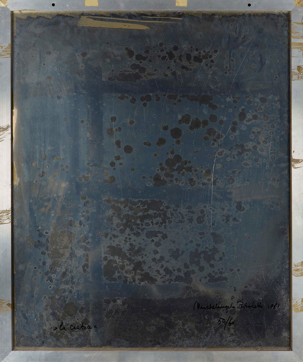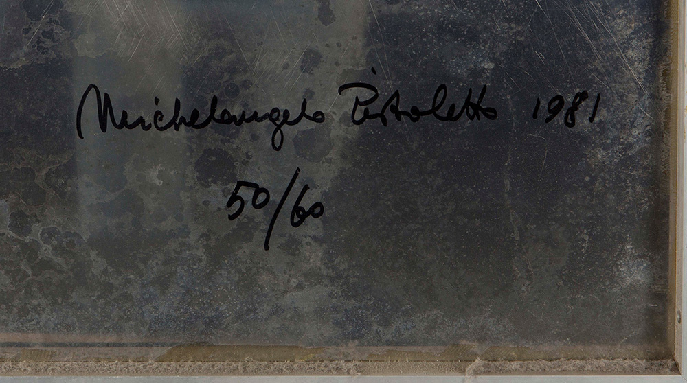 Michelangelo Pistoletto (1933), La cucitrice, 1981, serigrafia su lastra d’acciaio inox, cm 120x100 firmato e numerato al retro Es. 50/60