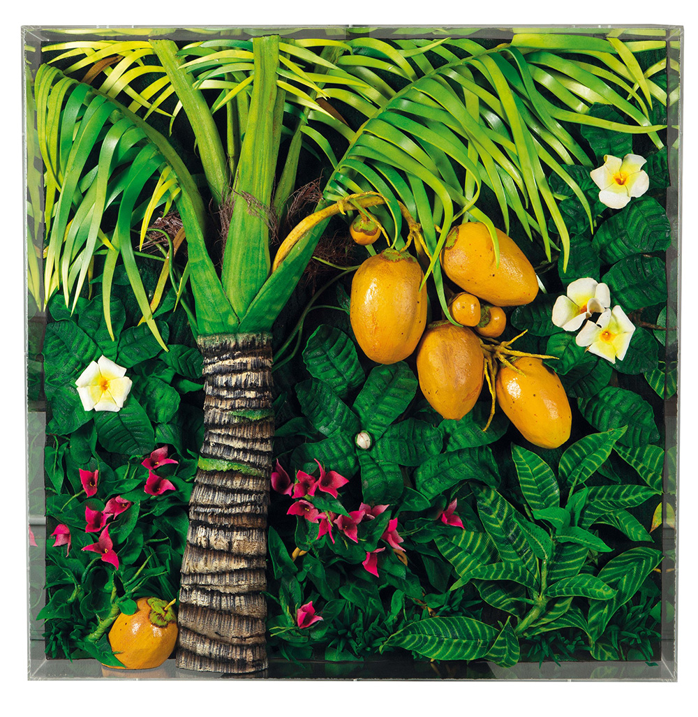 Piero Gilardi (1942), Palma e frangipane, 2010, poliuretano espanso, teca in plexiglass, cm 100x100x20,5 firmato e intitolato al retro Autentica su fotografia dell’artista