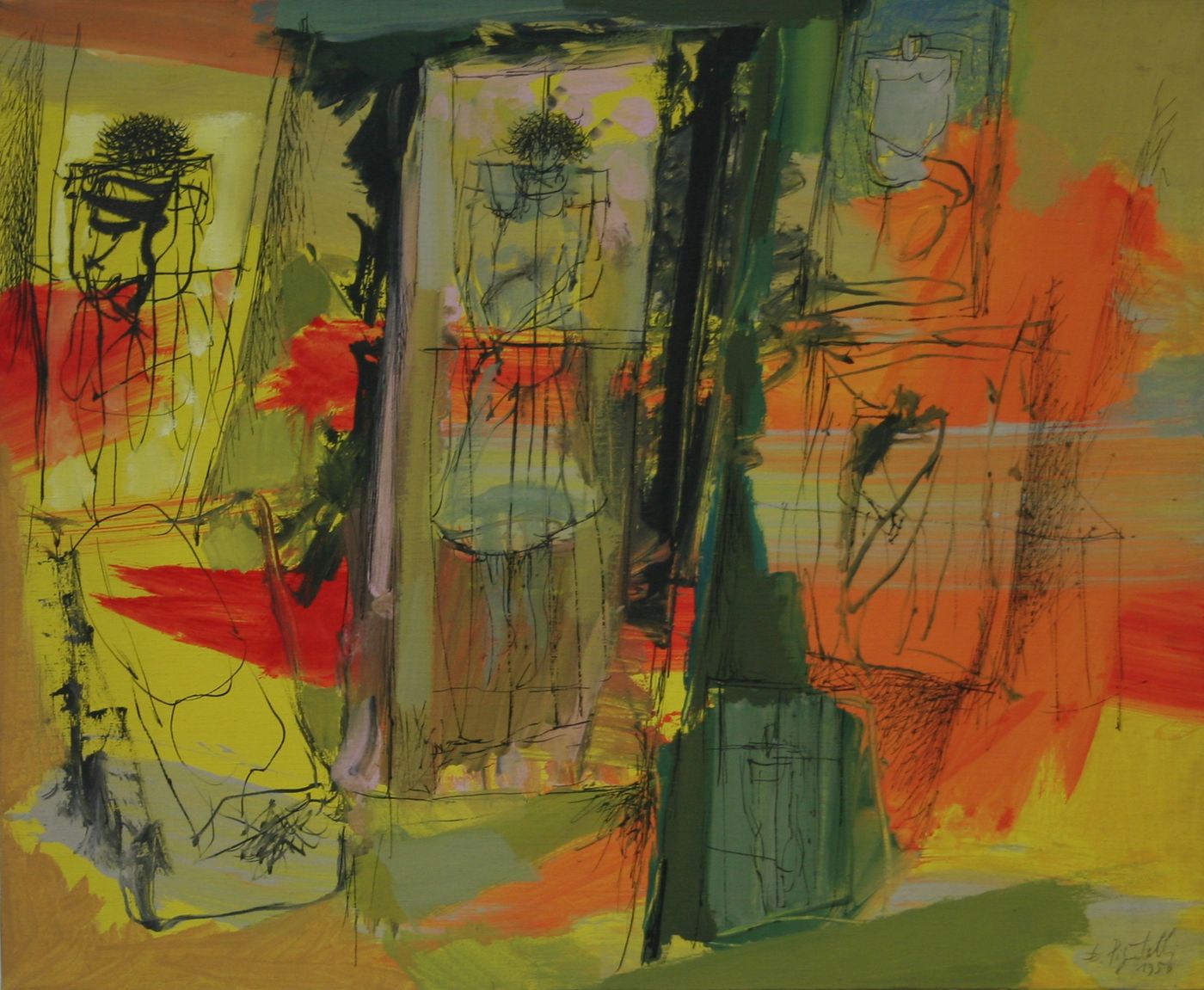 PIGNATELLI ERCOLE Lecce 1935 "Senza titolo" 1958 60x73 acrilici su tela Opera firmata e datata in basso a destra Guà Galleria Il Ridotto, Bologna (timbro al retro)