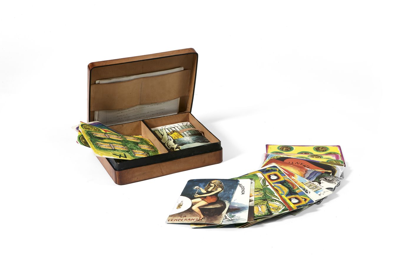 GUTTUSO RENATO Bagheria (PA) 1911 - 1987 Roma "Serie completa di 78 Tarocchi" 1971 18,5x12 litografie a colori su cartoncino, es. 71/200 serie di 78 carte da gioco Dichiarazione notarile di autenticità dell'autore del 2 dicembre 1972