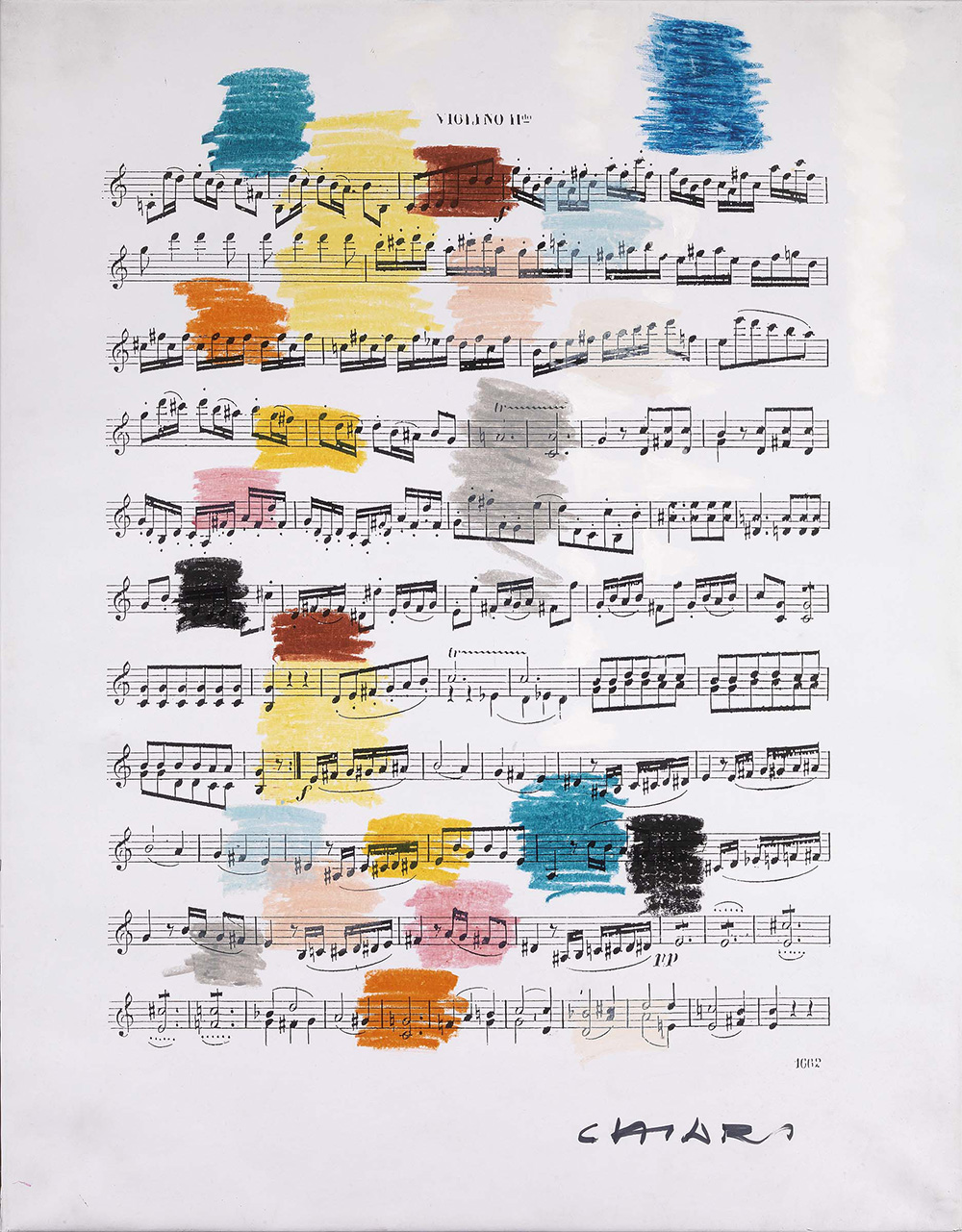 Giuseppe Chiari Firenze 1926 - 2007 Spartito Tecnica mista su carta applicata su tela, cm. 113x88 Firma in basso a destra: Chiari. Al verso sul telaio: timbro Alberto Frullini Arte Contemporanea, Pistoia. Foto autenticata dall'artista