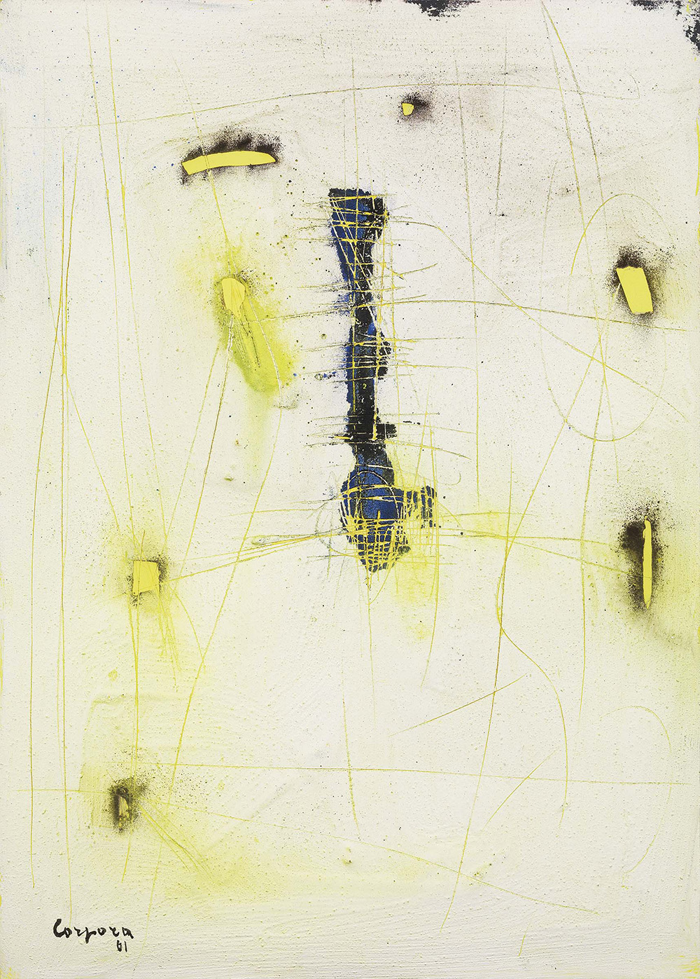 Antonio Corpora Tunisi 1909 - Roma 2004 Composizione, 1961 Olio, sabbia e graffiti su cartone, cm. 68x47,7 Firma e data in basso a sinistra: Corpora / 61