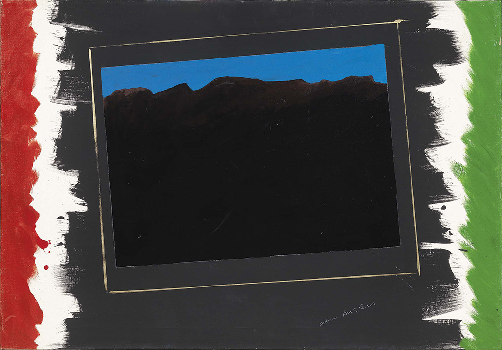 Franco Angeli Roma 1935 - 1988 Senza titolo, metà anni Settanta Tecnica mista su tela, cm. 70,3x100 Firma in basso a destra: Franco Angeli. Certificato su foto Archivio Franco Angeli, Roma, 12 luglio 2016, con n. P-110716/730
