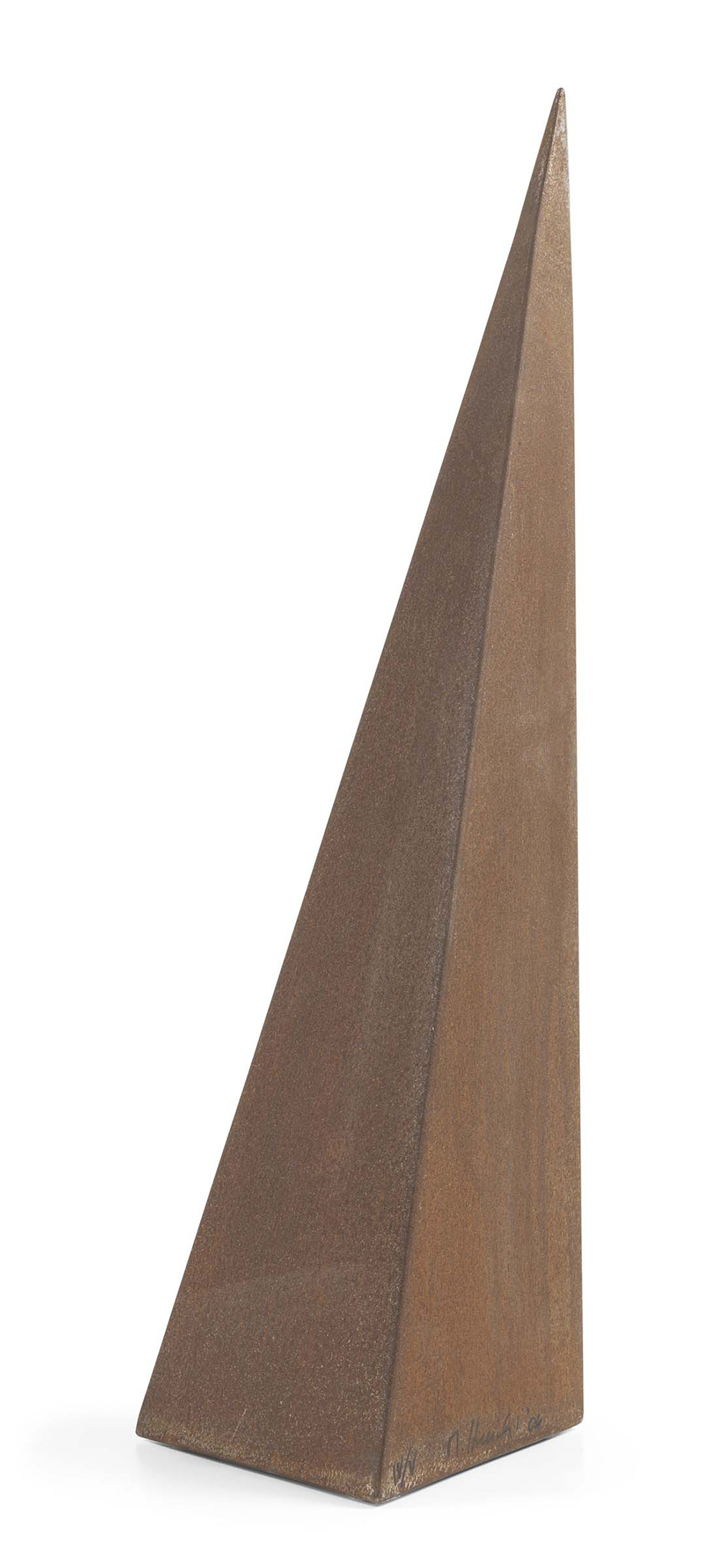 Mauro Staccioli Volterra (Pi) 1937 Sito, 2004 Scultura in acciaio corten, es. IV/V, cm. 60 h. Tiratura, firma e data in basso: IV/V M. Staccioli '04. Foto autenticata dall'artista