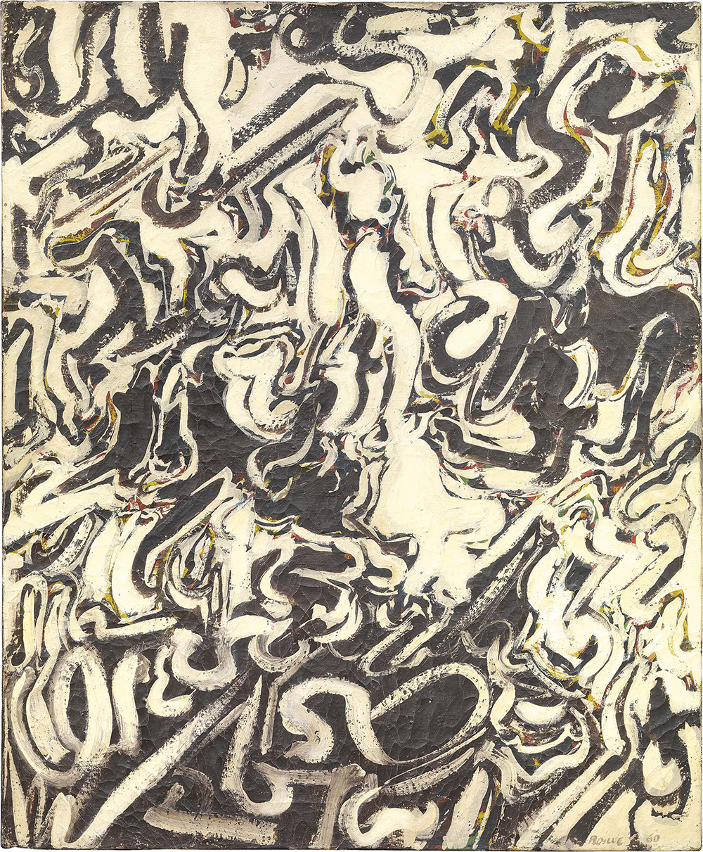 Luigi Boille Pordenone 1926 - Roma 2015 Composizione, 1960 Olio su tela, cm. 61x50 Firma e data in basso a destra: Boille 60; dedica, firma e data al verso sulla tela: Ad Argan / con riconoscenza [...] / Boille / Parigi / Aprile 1961