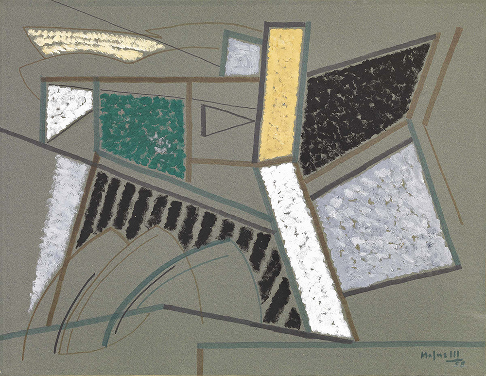 Alberto Magnelli Firenze 1888 - Meudon 1971 Senza titolo, 1958 Tempera su carta applicata su tela, cm. 50x65 Firma e data in basso a destra: Magnelli / 58