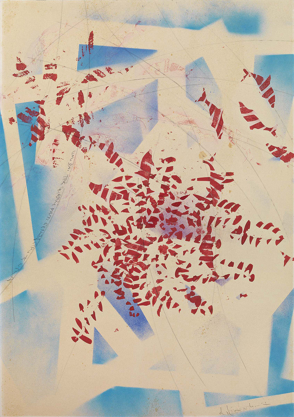 Alighiero Boetti Torino 1940 - Roma 1994 Senza titolo (Uno dei tre quadri muti senza scrittura), 1988 Tecnica mista su carta, cm. 99,7x70 Firma in basso a destra: Alighiero e Boetti. Certificato su foto Archivio Alighiero Boetti, Roma, 5 marzo 2013, con n. 7191