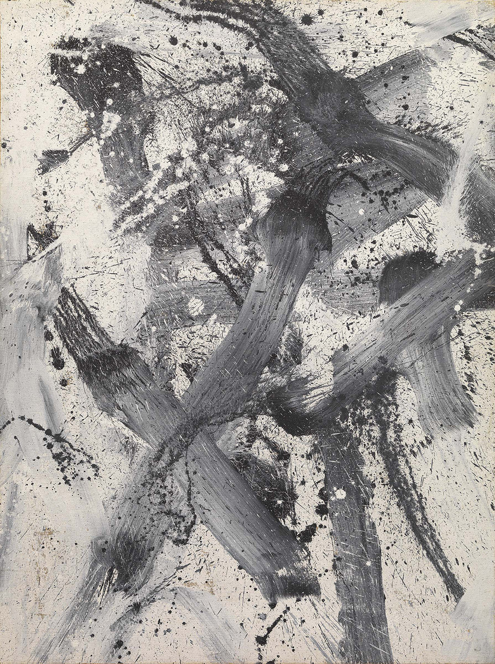 Toti Scialoja Roma 1914 - 1998 Grigio, 1987 Vinavil e acrilico su canapa, cm. 152x112,5 Firma, data e titolo al verso sulla tela: Scialoja 1987 / "Grigio". Certificato su foto Fondazione Toti Scialoja, Roma, 21/10/2010, con n. 068710