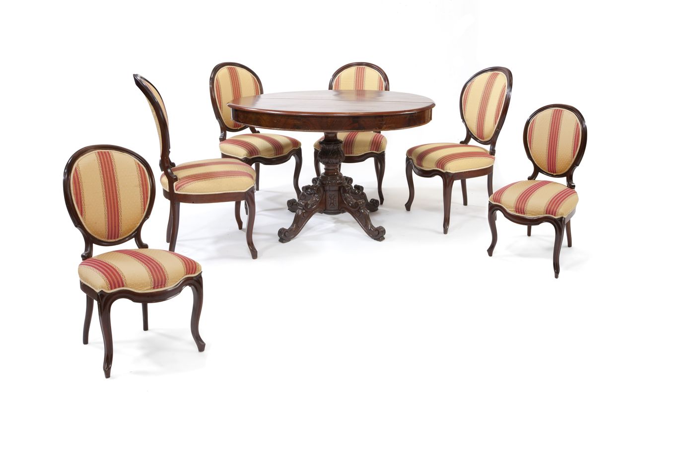 SALOTTO Salotto in mogano composto da un tavolo apribile di forma ovale e sei...
