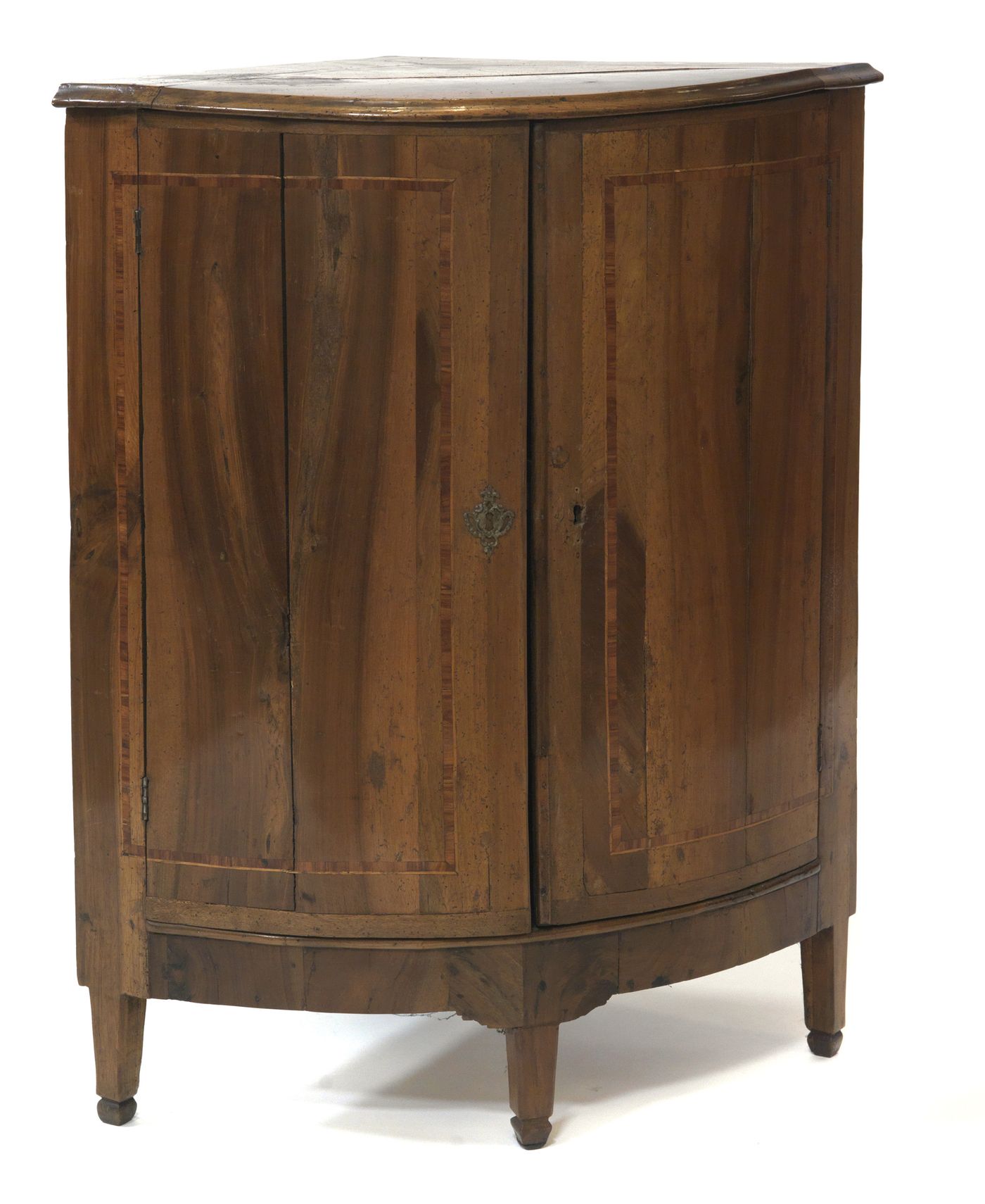 ANGOLIERA Angoliera a due ante in noce filettata in legno di rosa. Epoca, XIX...