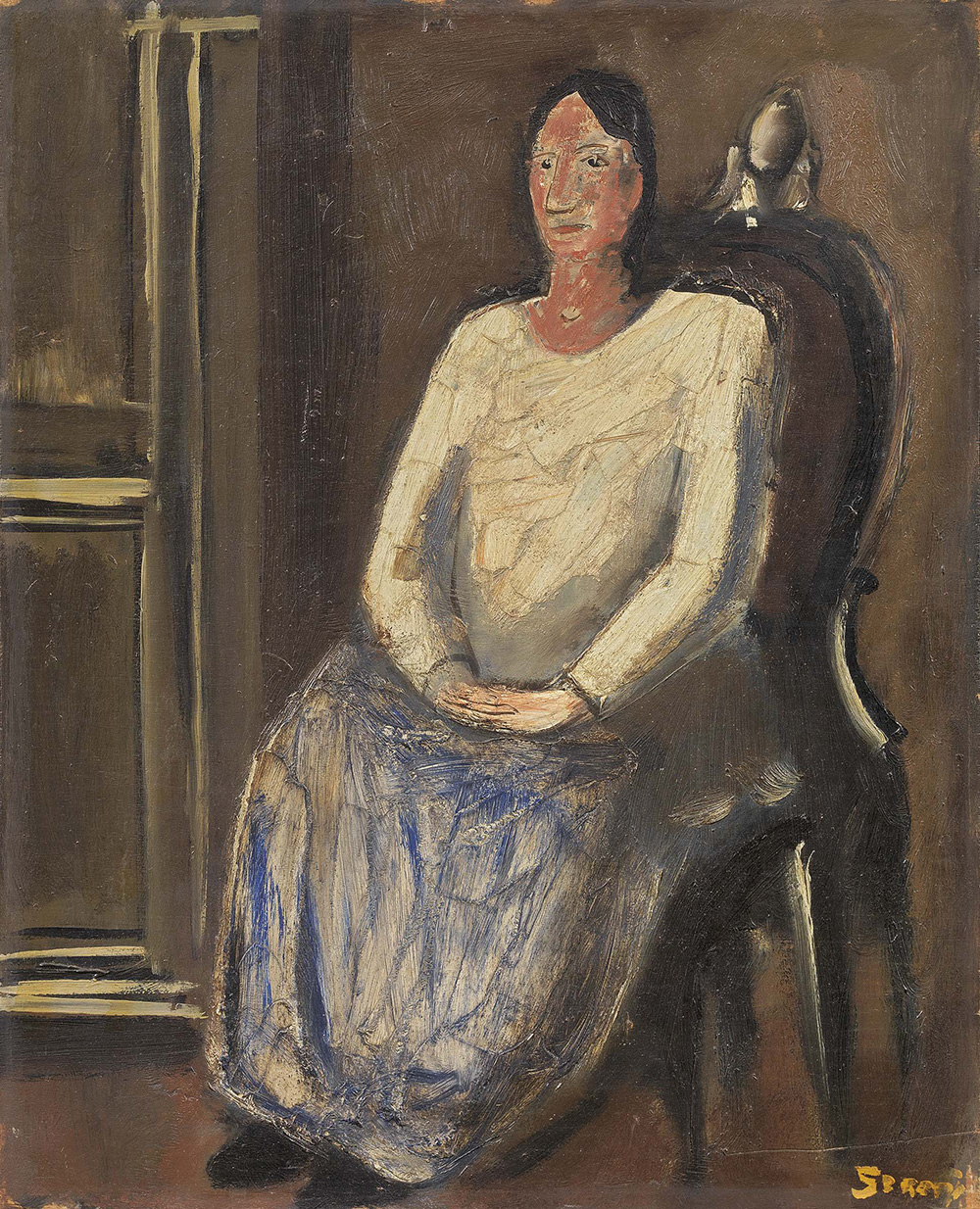 Mario Sironi Sassari 1885 - Milano 1961 Donna seduta, 1927 Olio su tavola, cm. 50x40 Firma in basso a destra e al verso: Sironi. Storia Galleria del Milione, Milano; Collezione Gianni Mattioli, Milano; Collezione privata Certificato su foto di Francesco Meloni. Bibliografia Flavio Fergonzi, La Collezione Mattioli. Capolavori dell'avanguardia italiana, Skira, Milano, 2003, pp. 30, 32