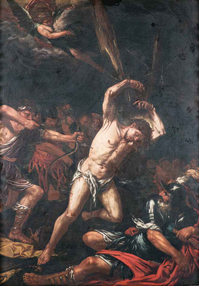 Giovanni Battista Langetti Genova 1635 – Venezia 1676 IL MARTIRIO DI SAN SEBASTIANO olio su tela, cm 166 x 119. Bibliografia: G.B. De Siati, Contributo agli studi sulla mostra genovese del 1949 alla giovinezza milanese di Alessandro Magnasco (1667 – 1749), in Primo Catalogo delle raccolte private di “Ipotesi” 1978-1979, edizione di Ipotesi, Rapallo 1978, n. 1, p. II, pp. II-III, ill. (come A. Magnasco) Il dipinto, reso noto come opera di Alessandro Magnasco su suggerimento di Mario Bonzi (comunicazione scritta al proprietario, ante 1978), in anni in cui la conoscenza del pittore ligure ma veneziano d’adozione Giovanni Battista Langetti non era ancora stata messa correttamente a fuoco, va oggi senza alcuna esitazione riferito a quest’ultimo. Sul pittore ha dedicato una vita di ricerche Marina Stefani Mantovanelli, a cui si deve infine la monografia del 2011 con un corposo catalogo ragionato (Giovanni Battista Langetti. Il Principe dei Tenebrosi, Ed. Soncino, Soncino 2011). Sfuggito all’attenzione degli studiosi, dopo la prima pubblicazione, quest’opera non compare nella monografia, ma presenta caratteri di stile che ne evidenziano la assoluta coerenza con l’opera tutta del Langetti, e in particolare è accostabile ad alcune tele che, come questa, non si riducono alla sola figura, ma presentano composizioni più affollate. Al di là della nascita e di una precoce probabile formazione nella sua città natale, verosimilmente presso Giovanni Battista Carlone, il Langetti è già a Roma presso Pietro da Cortona alla metà del secolo, proprio intorno al 1650, quando aveva poco circa 15 anni. Già orfano di entrambi i genitori, il suo legame con la famiglia Carlone a Genova non era poi tale da impedirgli di scegliere una diversa città per la sua futura carriera. Dopo un viaggio a Napoli, approderà dunque a Venezia già nella seconda metà degli anni Cinquanta, per rimanervi tutta la vita, diventando presto uno dei più importanti esponenti della corrente dei “Tenebrosi”. Ogni sua opera palesa tutte le componenti della sua formazione composte in una maniera che risulta singolare e ben riconoscibile. Le vediamo anche in questo riuscitissimo Martirio di san Sebastiano: il gusto per un colore fatto da pennellate materiche, seducenti nella loro corposità, e la predilezione per il rosso acceso come rialzo cromatico nel buio della scena, tutto già suggerito nella giovinezza da Giovanni Battista Carlone, grande colorista della scuola pittorica genovese dopo Rubens; la complessa composizione impostata sui principi della bipartizione dei piani, dell’uso delle diagonali incrociate su cui imperniare la scena, del dinamismo e dell’asimmetrica, secondo i canoni del più puro barocco imparato a Roma presso Pietro da Cortona; il verismo esplicito nella definizione dei nudi, qui nella figura del protagonista che è debitrice della lezione appresa dal viaggio a Napoli dove osserva attentamente a fa proprie il realismo crudo di Ribera; il “tenebrismo” generale per il registro luministico che gioca su pochi bagliori in un assetto sostanzialmente buio, senza però l’accentuazione “filosofica” che prediligerà in seguito con la scelta di soggetti con figure singole ed eroiche, come Catone, Tantalo, Sansone, Giona, Marsia ecc.. Tra queste anche San Sebastiano, privo delle figure dei comprimari che vediamo qui, in opere verosimilmente successive a questa, che va assegnata piuttosto alla prima maturità. Eseguita probabilmente all’inizio del settimo decennio, essa assomma tutte la componenti della formazione lasciando vivo il gusto per la narrazione e prelude a quell’intensità che verrà esasperata più tardi con opere più esplicitamente “tenebrose”. Anna Orlando