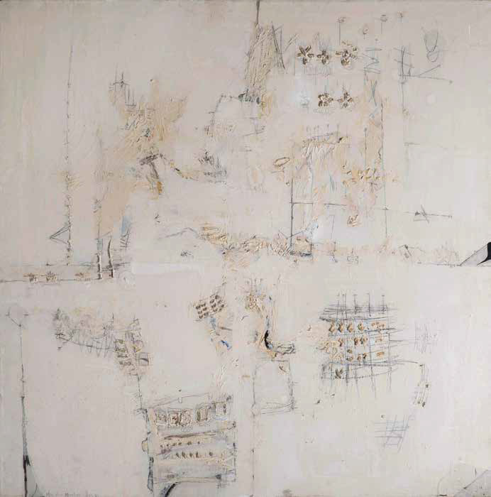 MALCOLM MORLEY Londra 1931 SENZA TITOLO, 1961 olio, resina, pastelli e grafite su lino, cm 154x153. Firmato e datato in basso a sinistra: Malcolm Morley 1961