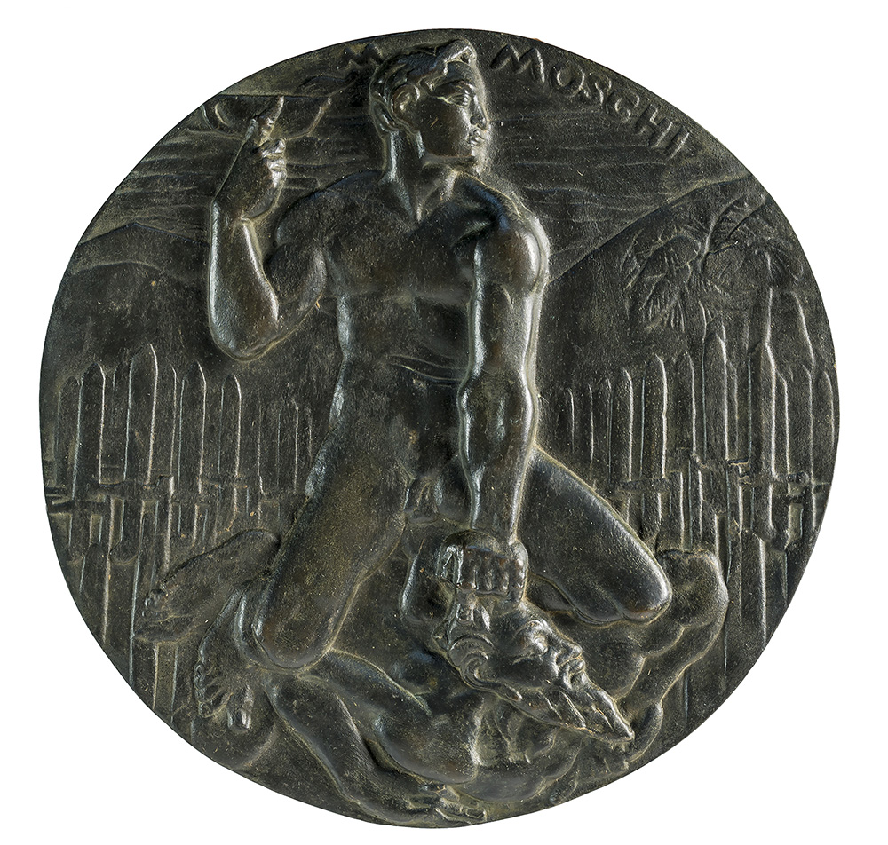 MARIO MOSCHI La sottomissione delle colonie Bassorilievo in bronzo, d 26 cm Inscritto in alto: M.Moschi
