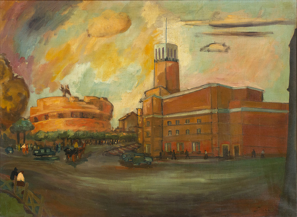 GIUSEPPE SUCCI La Casa Madre dei mutilati con Castel Sant'Angelo, 1930 circa...