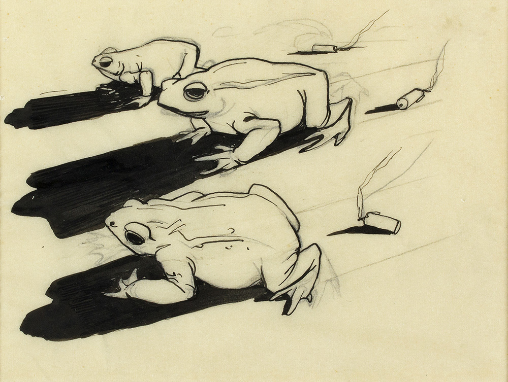 DUILIO CAMBELLOTTI Le rane China su carta, 13 x 17 cm circa