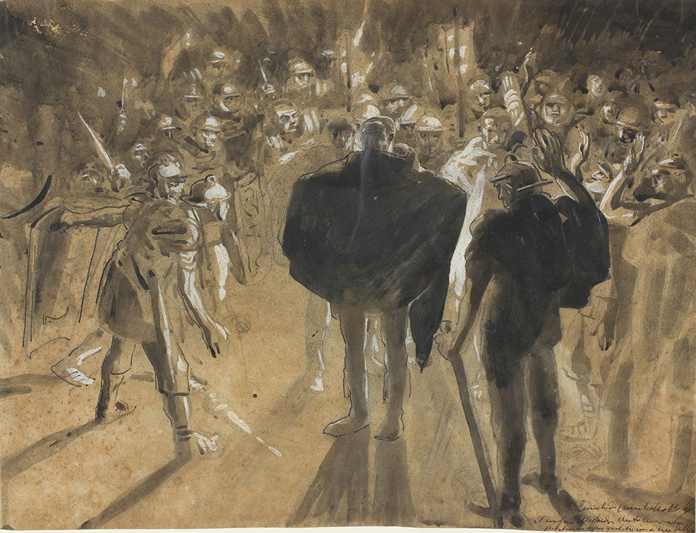 DUILIO CAMBELLOTTI Scena per Ciclope e Satiri alla caccia, Siracusa, 1927 Acquerello su carta, 33 x 44 cm Firma e dedica in basso a destra: Duilio Cambellotti / Al carissimo Manfredi Antolini... Analogo disegno per scenografia è pubblicato in Duilio Cambellotti, L’Officina dell’ambiente, a cura di P. G. Castagnoli, F. D’Amico, F. Gualdoni, Electa, Milano 1990, (catalogo mostra Bologna 1990), p. 76 CONDITION REPORT Gore di umidità