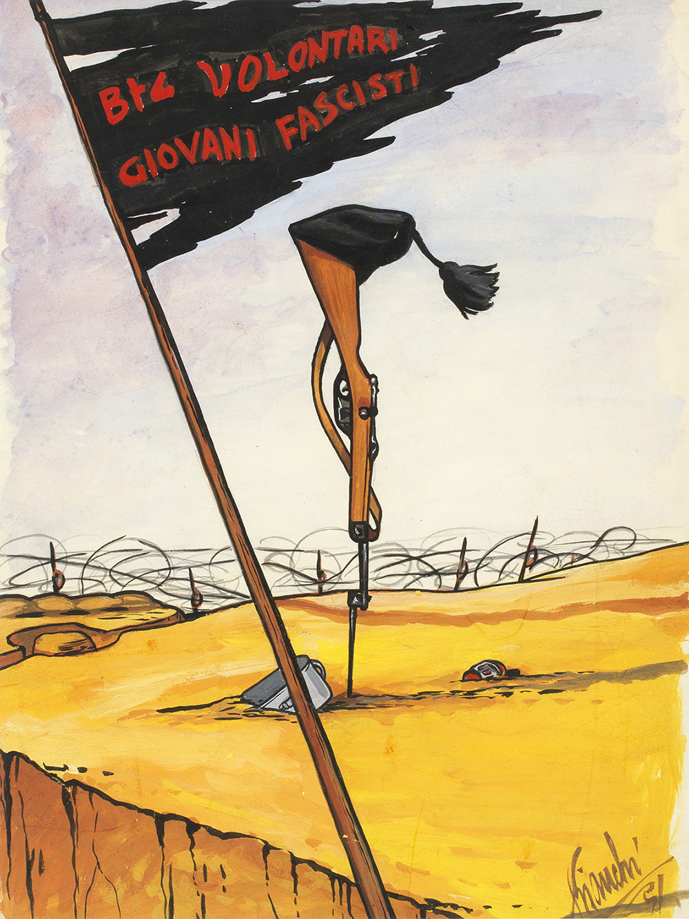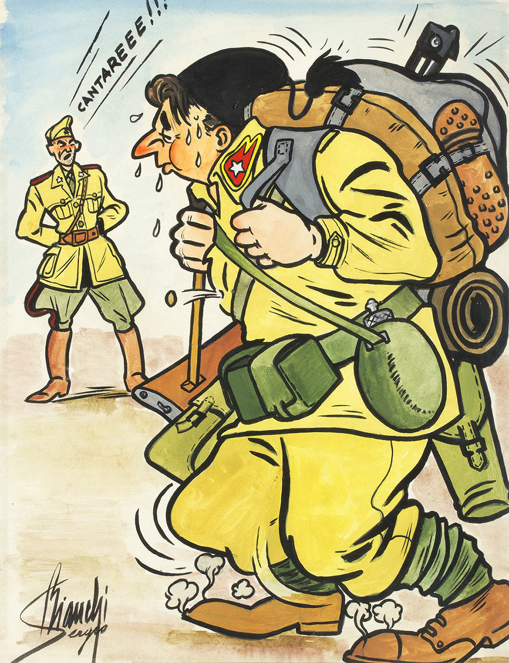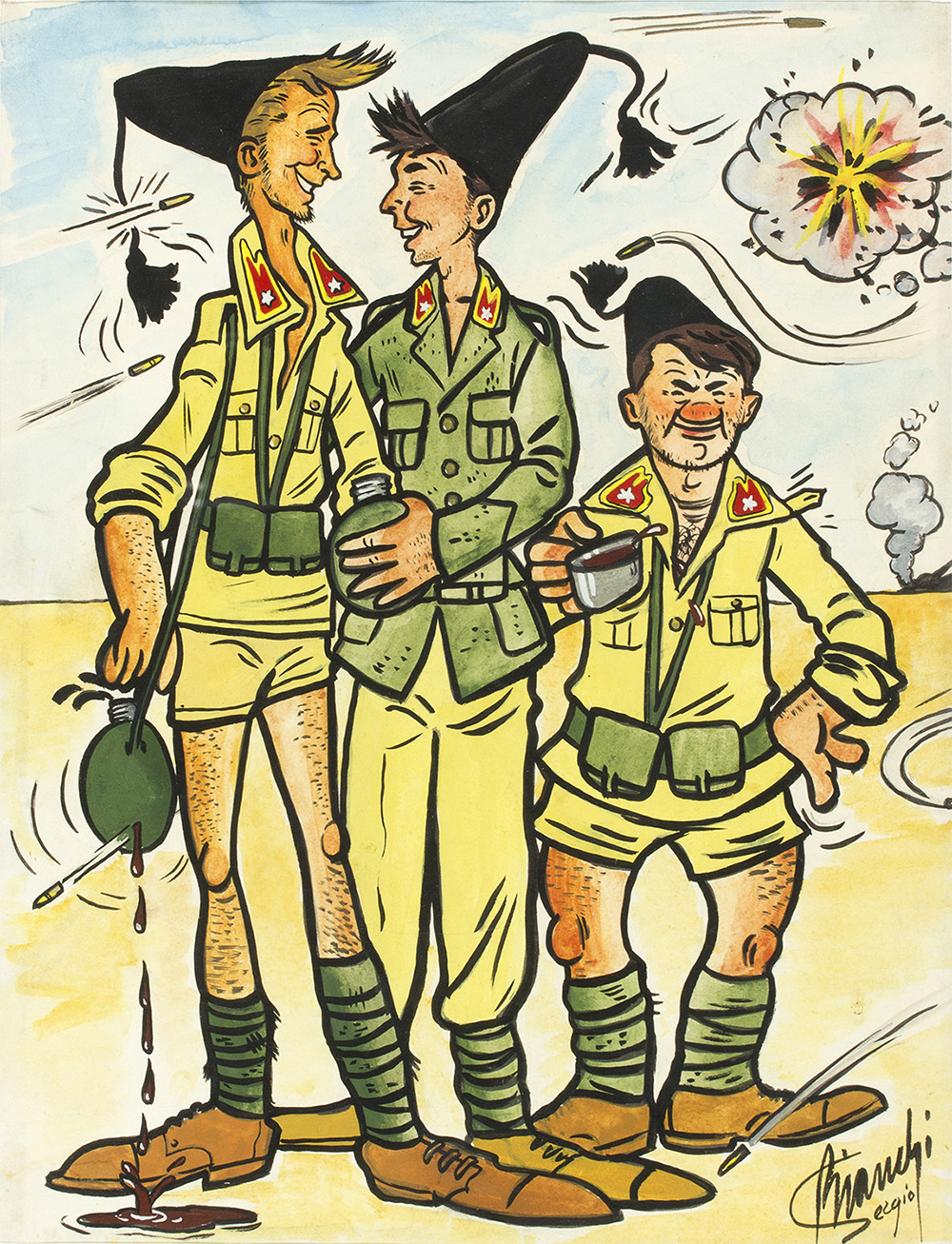 SERGIO BIANCHI Soggetti militari di gusto satirico Cinque aquerelli su carta,...