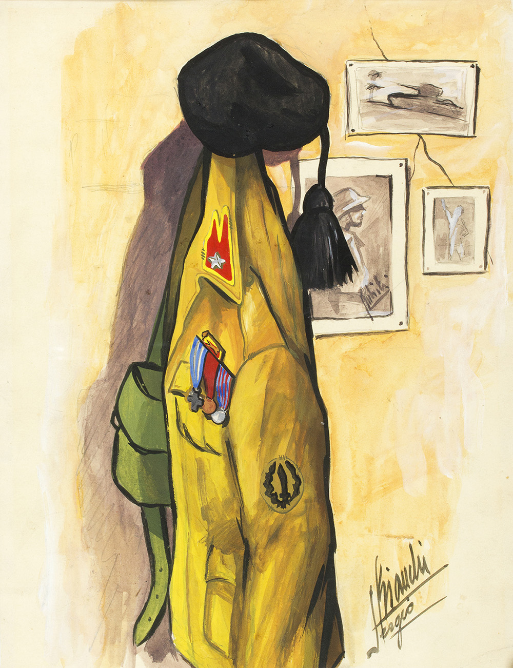 SERGIO BIANCHI Soggetti militari di gusto satirico Cinque aquerelli su carta, 30 x 23,3 cm circa; 50 x 40 cm (cornice compresa) Firma su ogni esemplare