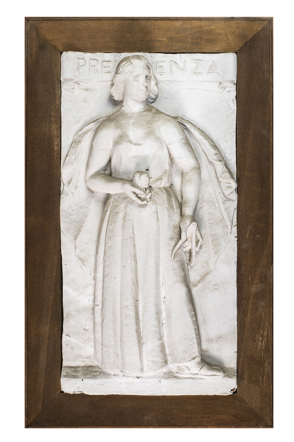 ERCOLE DREI ALLEGORIA della PREVIDENZA Bassorilievo in gesso, 80 x 40 cm Entro cornice in legno Gesso preparatorio di uno dei sei bassorilievi in bronzo posti sul portone del palazzo oggi sede della Polizia Tributaria in Roma CONDITION REPORT Difetti minimi