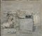 PIERO SADUN Paesaggio grigio, Anni ‘50 Olio su tela, 30 x 35 cm Firma al retro: 280 Sadun Al retro etichetta della Galleria “La medusa” e articolo sulla mostra antologica di Piero Sadun, Palazzo Barberini 1976, Roma