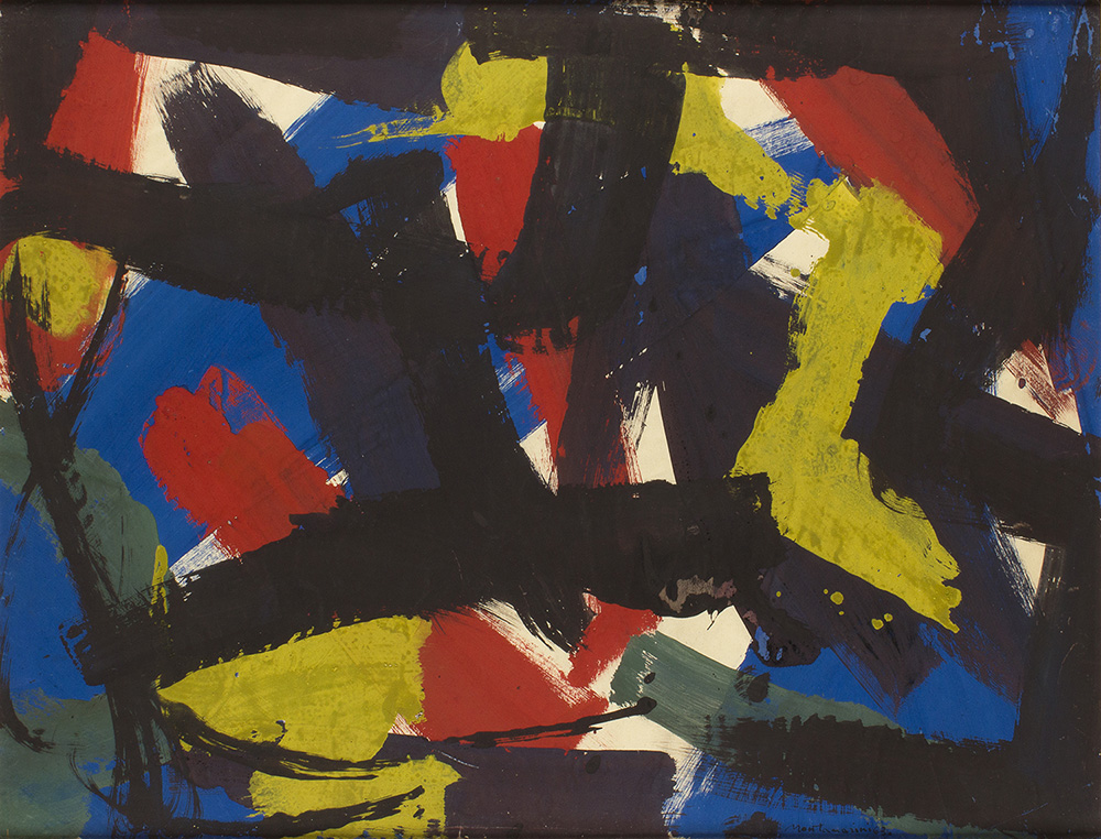 LUIGI MONTANARINI Lacerazioni, 1963 Olio e acriico su carta, 60 x 78,5 cm Firma e data in basso a destra: Montanarini 63 PROVENIENZA Signora Iorise Tarabella Montanarini ESPOSIZIONI Palazzo Azzurro ‘Museo della Memoria’ 1998 - Mostra del Maestro Luigi Montanarini 1906 - 1998. Premio Internazionale Filignano Arte 2000. Catalogo mostra p. 47 Autentica Archivio Iorise Tarabella Montanarini su foto a colori rilasciata in data 9 maggio 1999