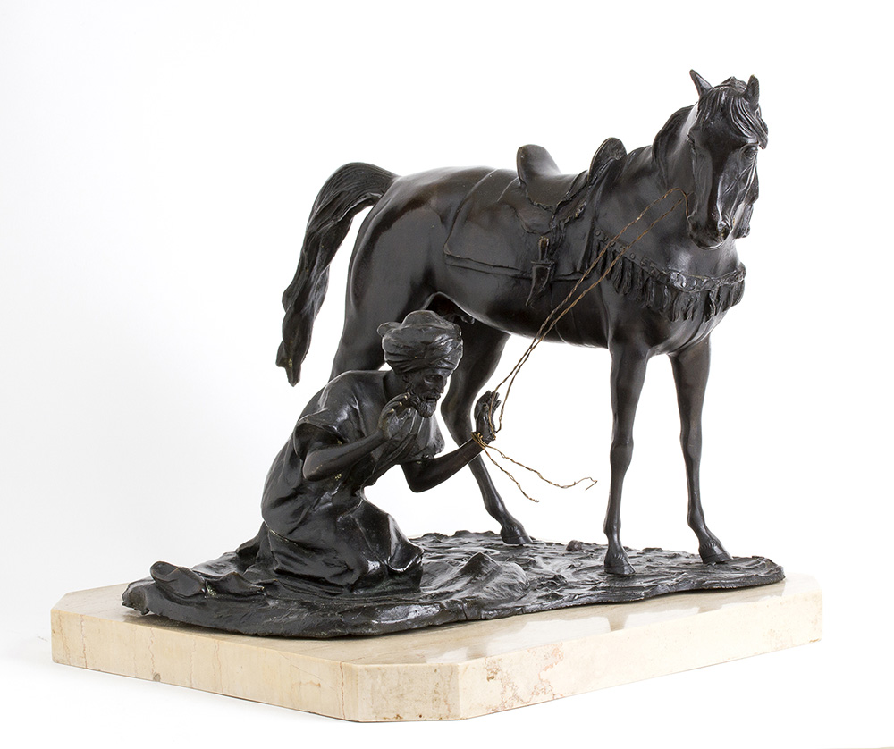 GIUSEPPE FERRARI L’ora della preghiera Gruppo in bronzo, 28 x 28 x 33 cm Firma in basso a sinistra: G. Ferrari