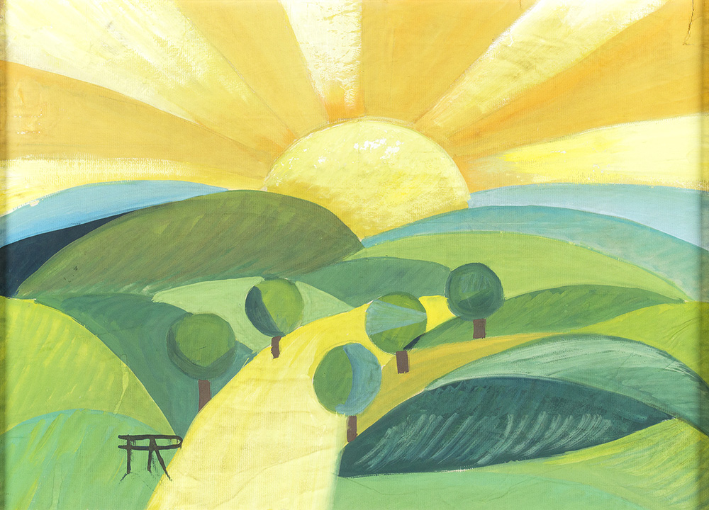 PIPPO RIZZO Paesaggio Tecnica mista su carta incollata su masonite, 33 x 47 cm Iniziali in basso a sinistra: PR Autentica su foto degli Archivi del Futurismo in Sicilia