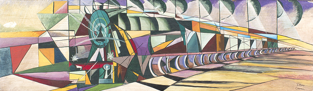 VITTORIO CORONA Dinamismo di un treno, 1921 Tecnica mista (tempera e olio) su...