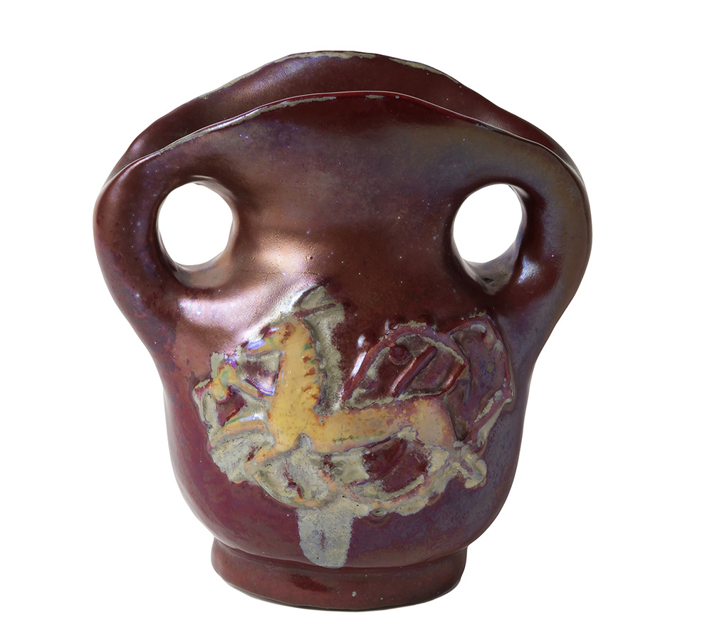 PIETRO MELANDRI Vasetto biansato con figure di cerbiatto in rilievo, Anni ‘40...