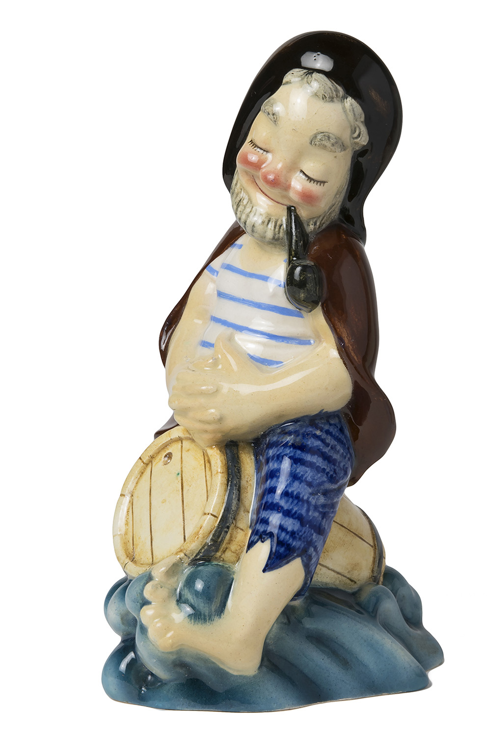 SACA - ANZENGRUBER Vecchio marinaio, Anni ‘40 Scultura in maiolica policroma,...
