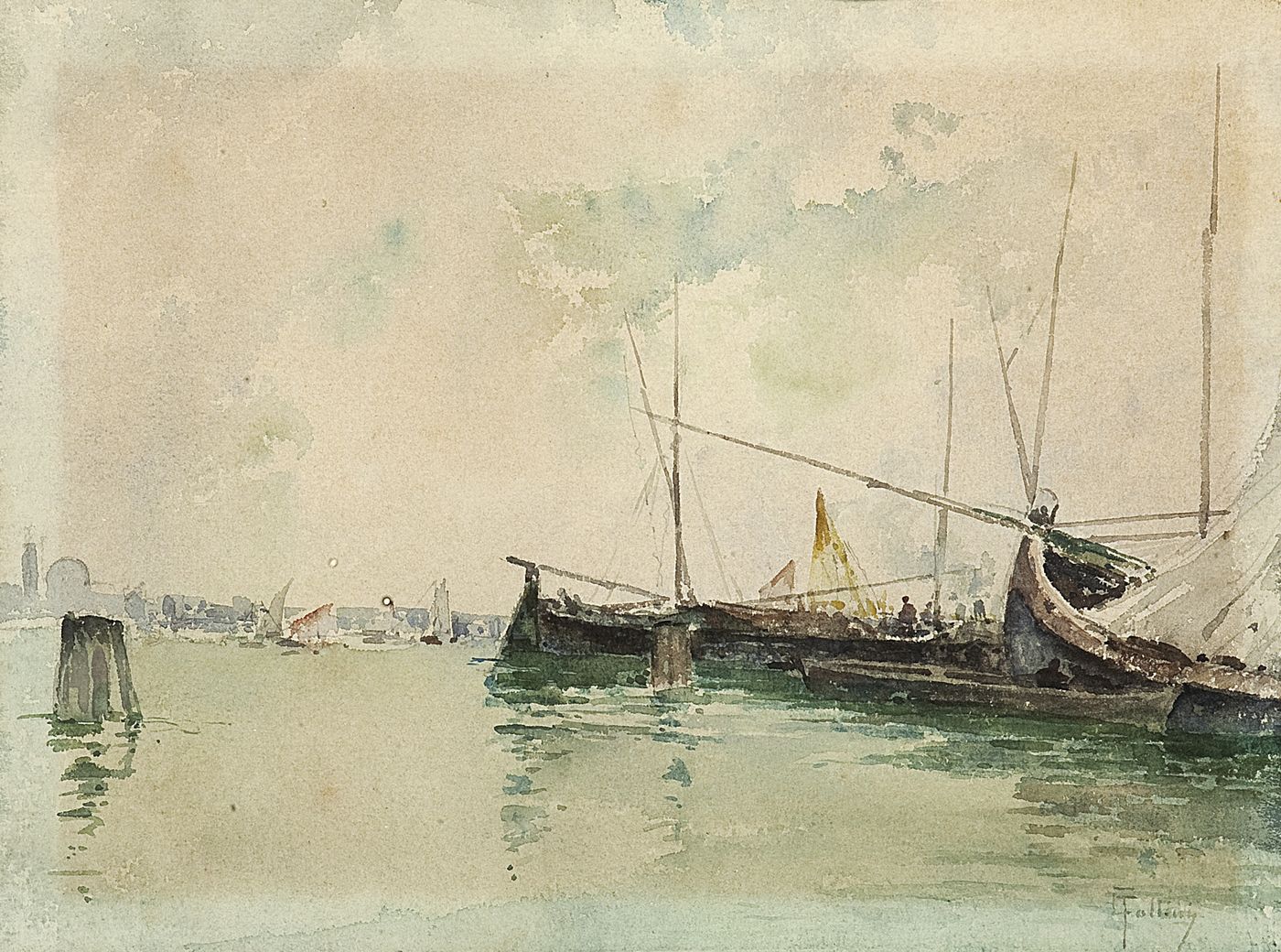 FOLLINI CARLO Domodossola (NO) 1848 - 1938 Pegli (GE) "Marina" 20,5x27,2 acquerello su carta Opera firmata in basso a destra